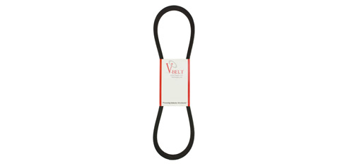 A belt with a flat bottom and tapered sides, used to transmit motion between two pulleys. Multiple V-belts are often used together in order to increase carrying power.